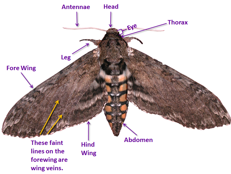 The adult moth climbs a stick and lets the small, uninflated wings hang behind it. Gravity and pumping of fluid into the wing veins inflates the wings; sclerotization (hardening) then occurs to make the wings rigid.