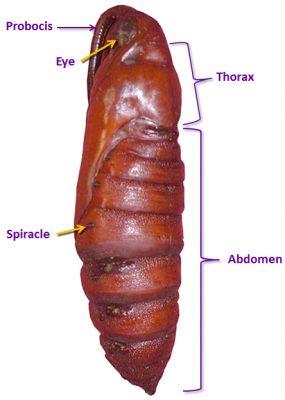 The length of time spent in the pupal stage depends upon the hours of light received by the larva.
