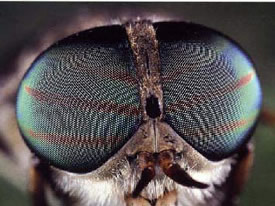 The picture below (left) shows how we see flowers. We can see each petal and leaf very clearly. The picture below (right) shows the same flowers through insect’s compound eyes. Insects do not need to see things as clearly as we do because they are more worried about being eaten! Seeing the movement of an attacking predator is far more important for their survival.